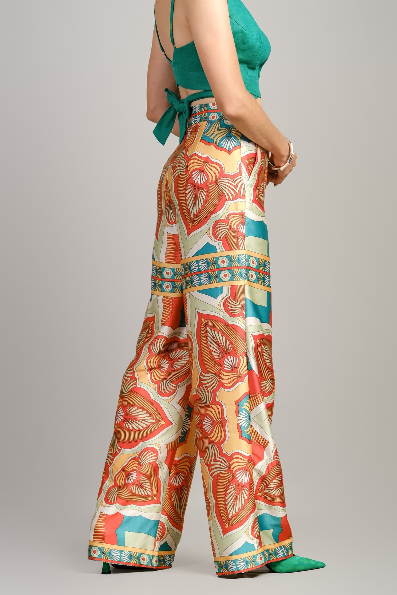 TROPICAL SATIN SILK TROUSERS